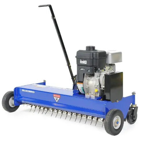 One hundred counter-rotating spring tines over a 38″ width make this towable comber extremely efficient. A lift handle engages the spring tine reel, which is chain driven by a 5.5HP Honda Briggs & Stratton engine. The D110 makes short work of large yards, commercial or institutional lawns, golf courses, and playing fields. Sku# and Part Numbers D110B 539 01 11-00, D110H 539 01 11-01